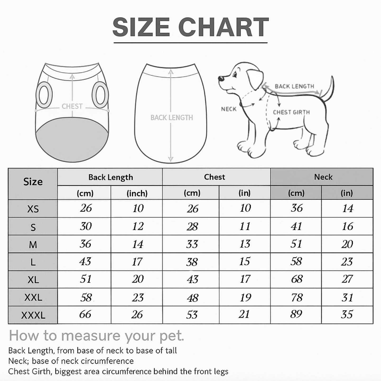 Back length – from the base of the neck to the tail